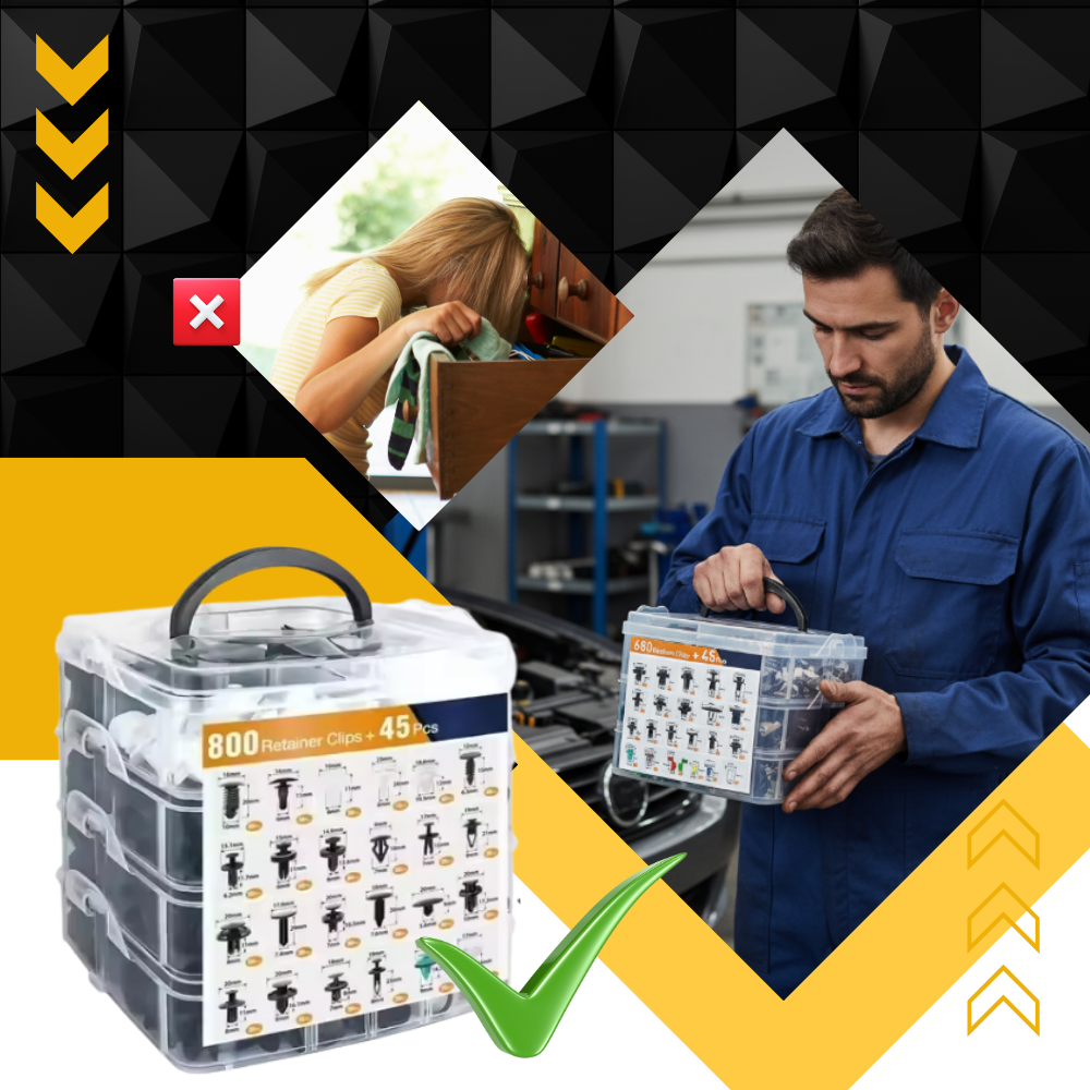 Enten du jobber med en kompakt sedan, SUV eller lastebil, er dette Omfattende Bilnagelsettet designet for å passe til et bredt spekter av bilmerker og -modeller. Med de mest brukte festeklipstypene inkludert, er disse settene kompatible med merker som Ford, GM, Toyota, Honda, Chrysler og flere. Det er en smart, tidsbesparende løsning for reparasjon av støtfangere, dørlister, fenderforinger, sprutbeskyttere og mer – uten å måtte bekymre deg for å finne riktig passform hver gang.